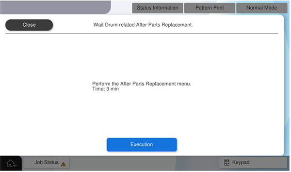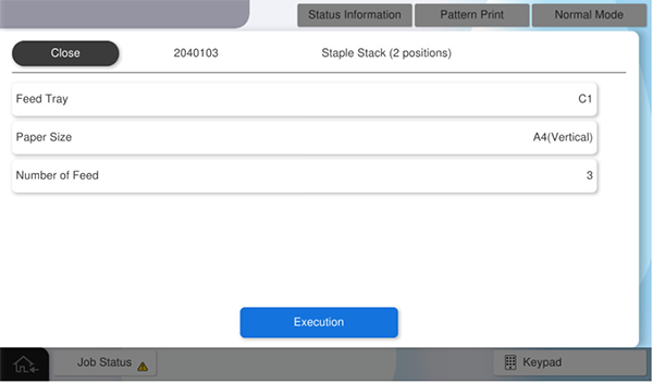 可设置参数如下。设置项目 选择 进纸托盘 C1、C2、C3、C4、手动进纸器 可用纸张大小 A4(纵向)、Letter(纵向)、A3、Ledger 张数 3(固定) - 按下[Execution](执行)输出调整样本。