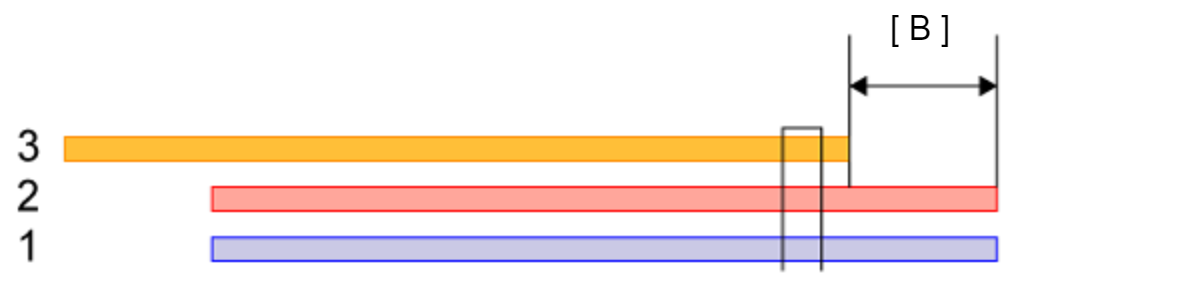 若要继续调整,从步骤4-4开始重复。 - 利用调整样本的第二张边缘作为参考,测量与第三张边缘的偏差(A)。