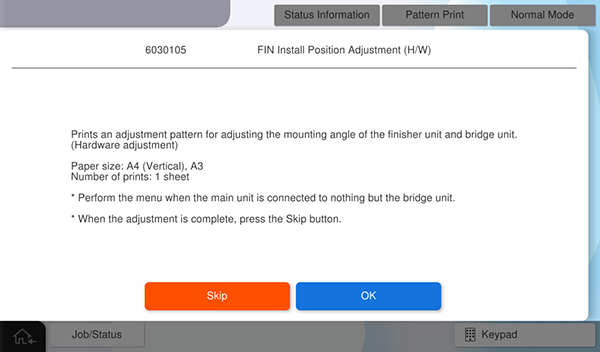- 按[OK](确定)再次弹出纸张,检查调整结果。