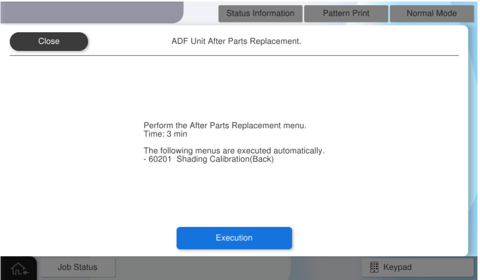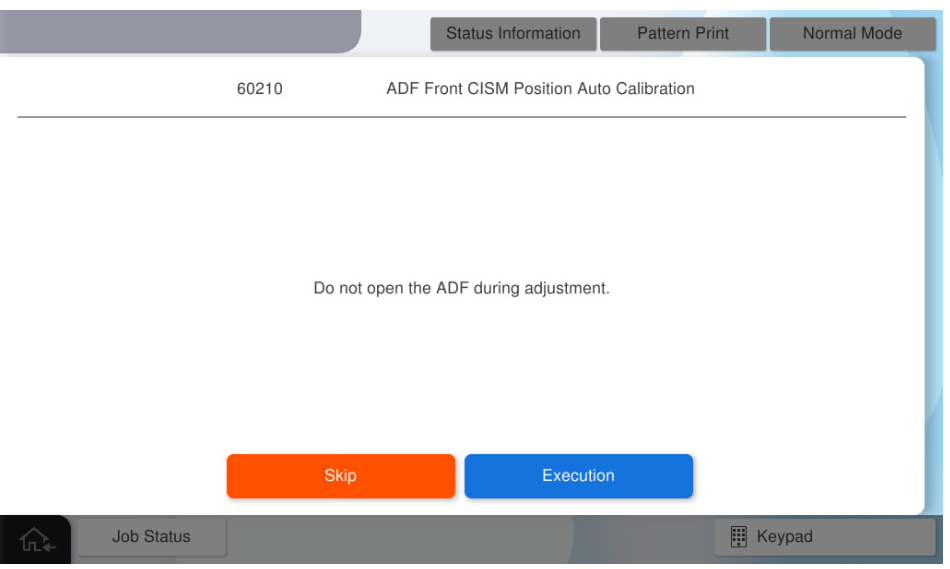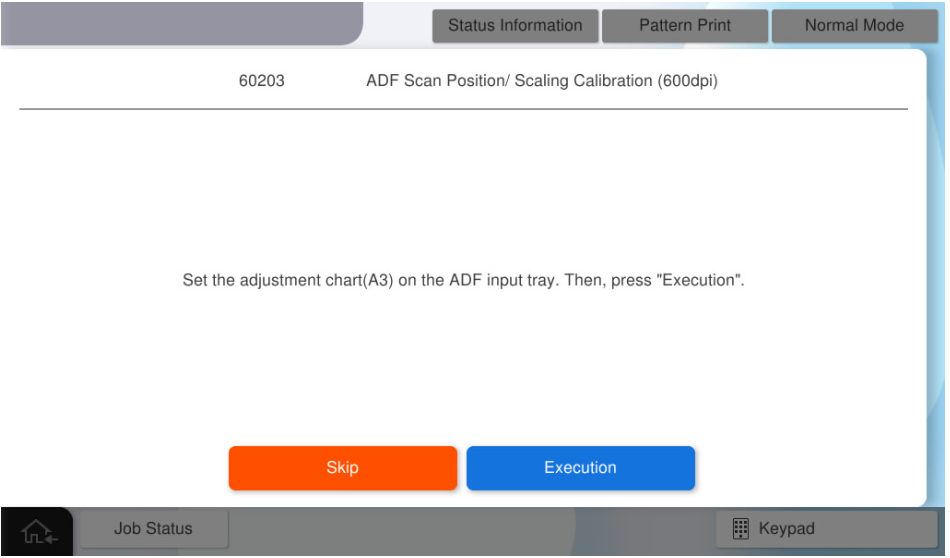 执行ADF扫描位置/缩放校准(600dpi)。 - 再次在ADF托盘上设置A3-DS表,然后按[Execution](执行)。