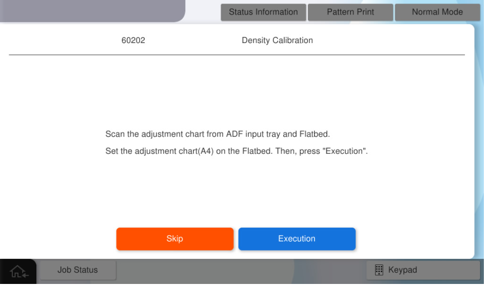 执行SCN单元的浓度调整。 - 在ADF托盘上设置A4H-MTF表,然后按[Execution](执行)。