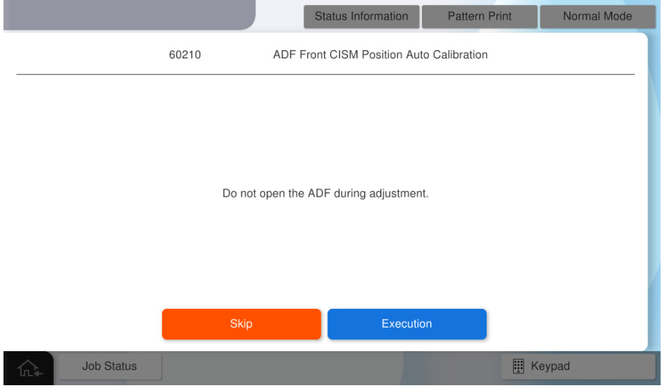 执行ADF扫描位置/缩放校准(600dpi)。 - 再次在ADF托盘上设置A3-DS表,然后按[Execution](执行)。