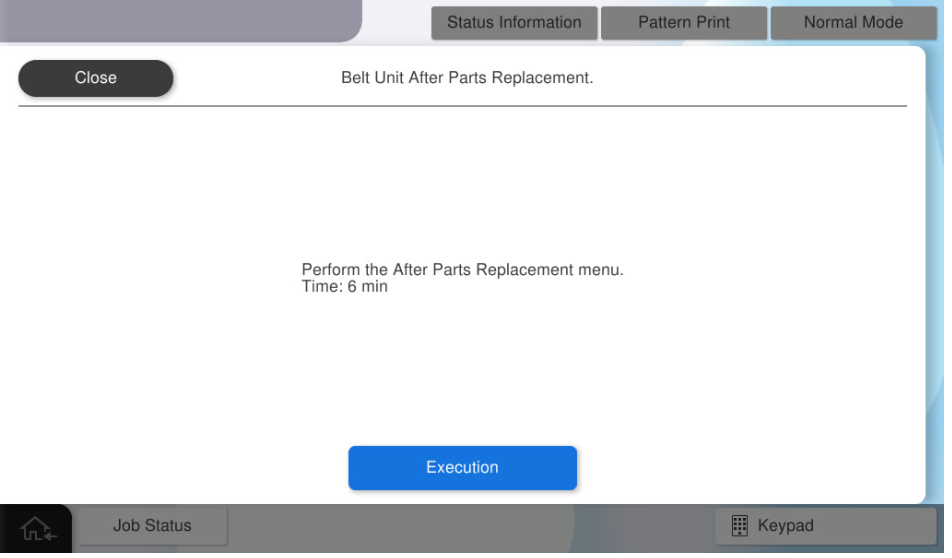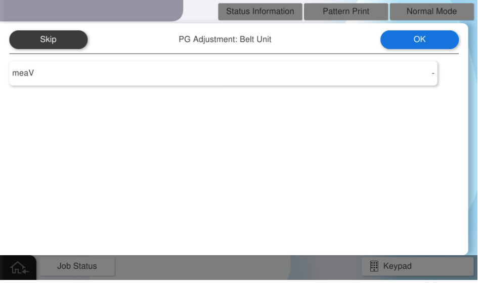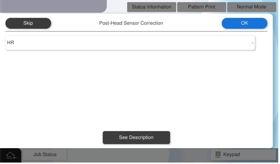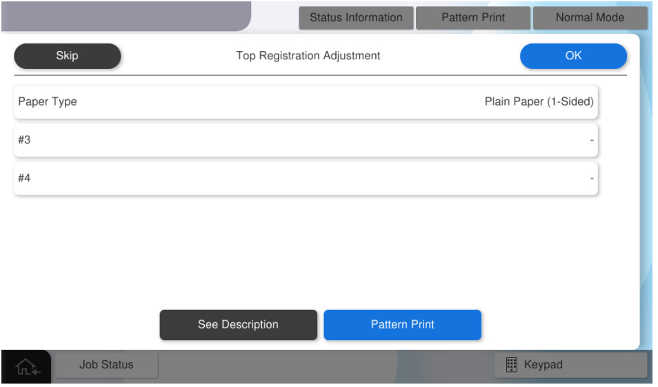 如果在输入所有值后按[Pattern Print](图案打印),将反映调整值。调整值反映后,输入到面板的所有调整值将被清除。按下[Close](关闭)结束调整。