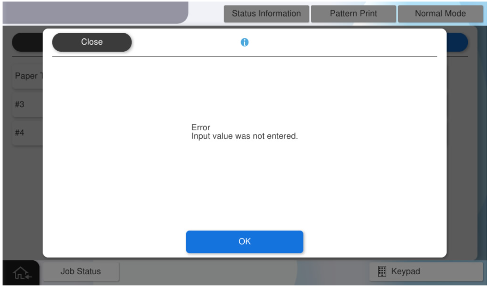 - 如果在未输入所有值的情况下按[OK](确定),会显示错误屏幕。