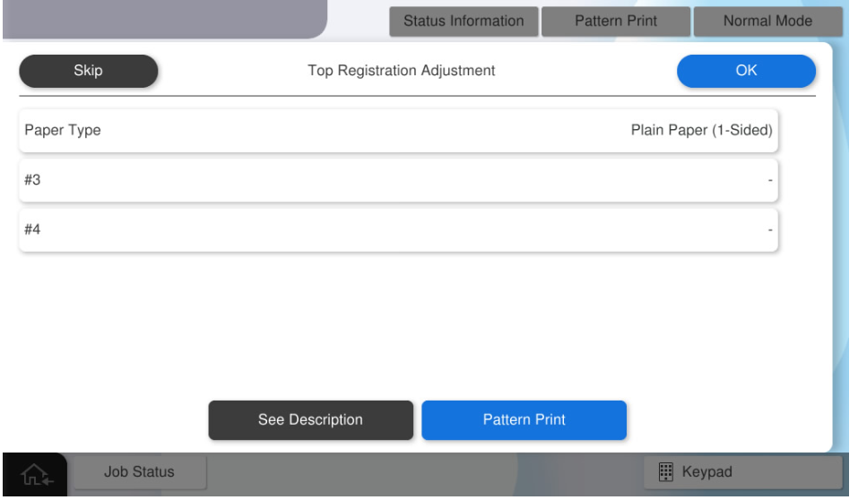 如果在输入所有值后按[Pattern Print](图案打印),将反映调整值。调整值反映后,输入到面板的所有调整值将被清除。按下[Close](关闭)结束调整。
