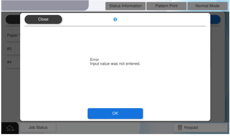 - 如果在未输入所有值的情况下按[OK](确定),将显示错误屏幕。