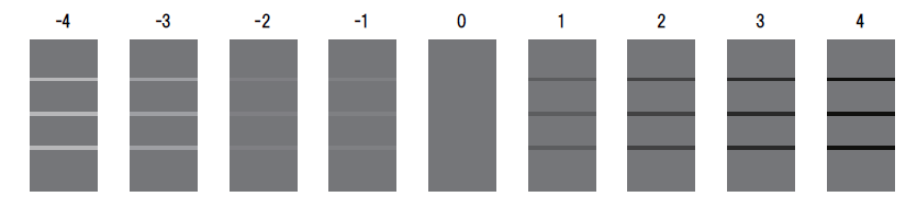 从打印的图案中,选择四个区块与三条水平线之间渐变差异最接近的图案,图中数字配置为设置值。