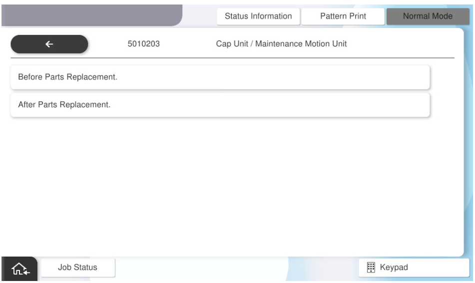 - 选择[Before Parts Replacement](零件更换前)。