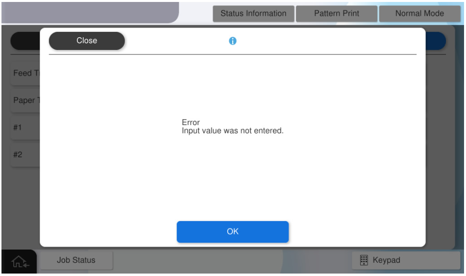 - 如果在未输入所有值的情况下按[OK](确定),会显示错误屏幕。