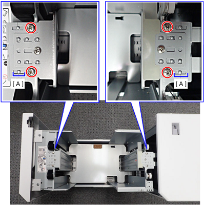 - 松开纸盒单元底部侧面纸导轨的2颗螺丝。