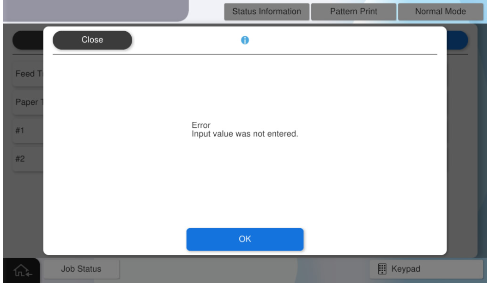 - 如果在未输入所有值的情况下按[OK](确定),会显示错误屏幕。