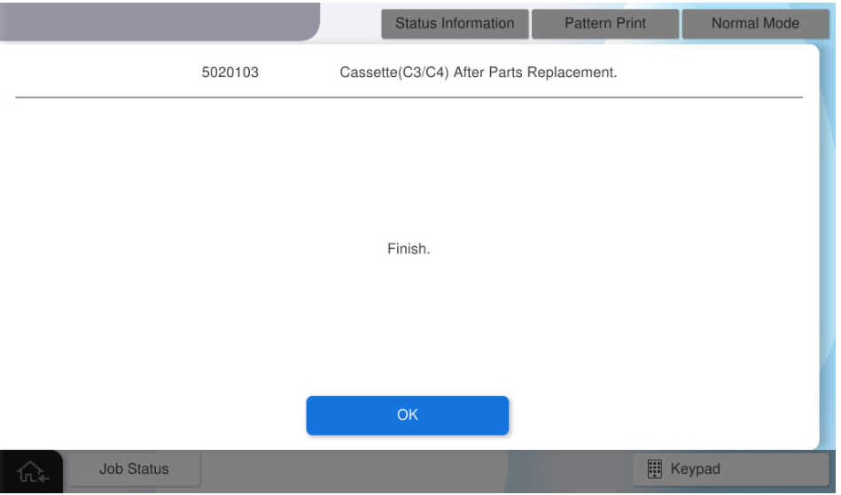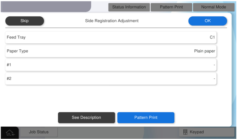 如果在输入所有值后按[Pattern Print](图案打印),将反映调整值。调整值反映后,输入到面板的所有调整值将被清除。按[Skip](跳过)结束调整。