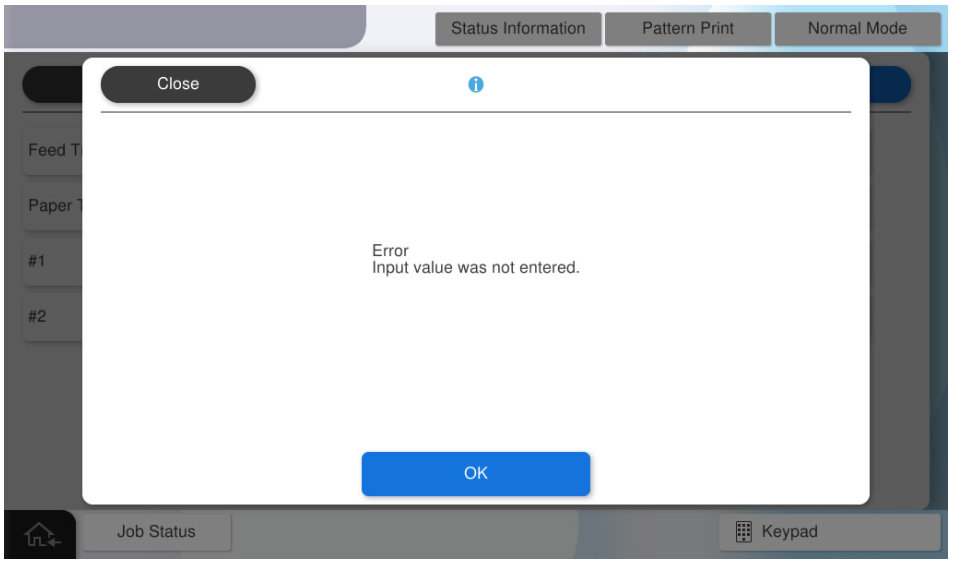 - 如果在未输入所有值的情况下按[OK](确定),会显示错误屏幕。