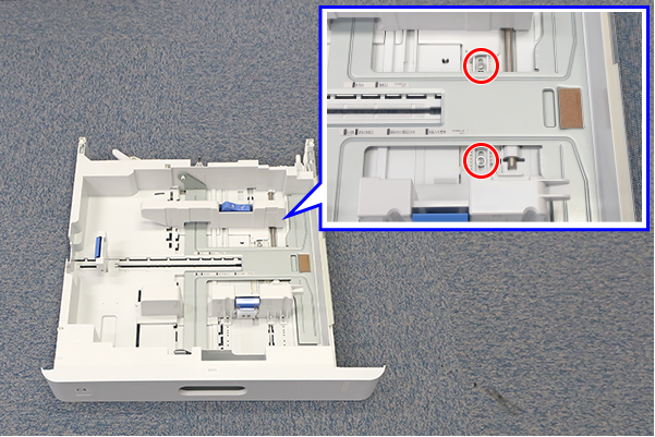 - 松开纸盒单元底部侧面纸导轨的2颗螺丝。