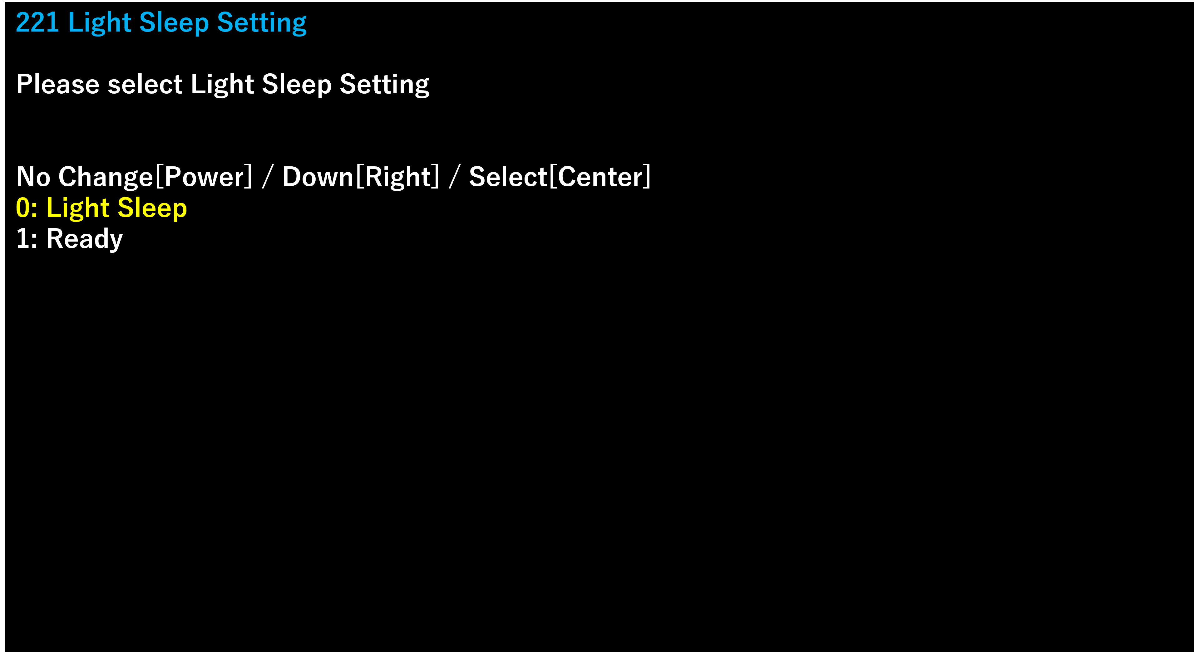 - 选择[221 Light Sleep Setting](221浅睡眠设置)并选择[RUN](运行)。