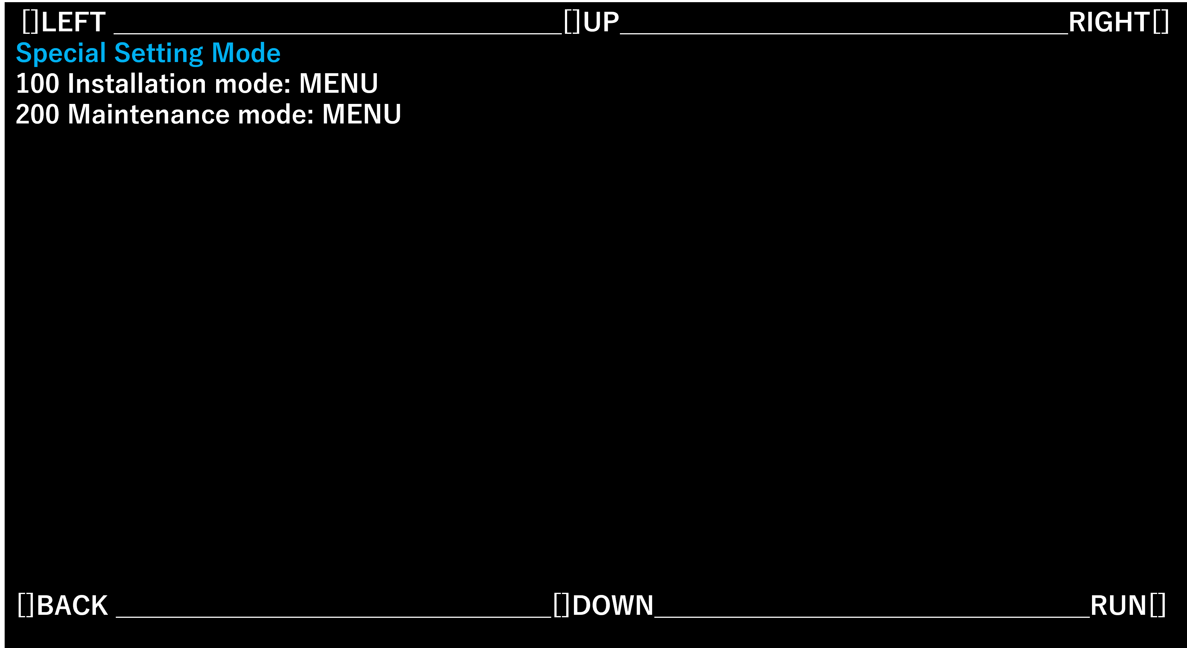 选择[200 Maintenance Mode:MENU ](100安装模式:菜单)并选择[RUN](运行)。