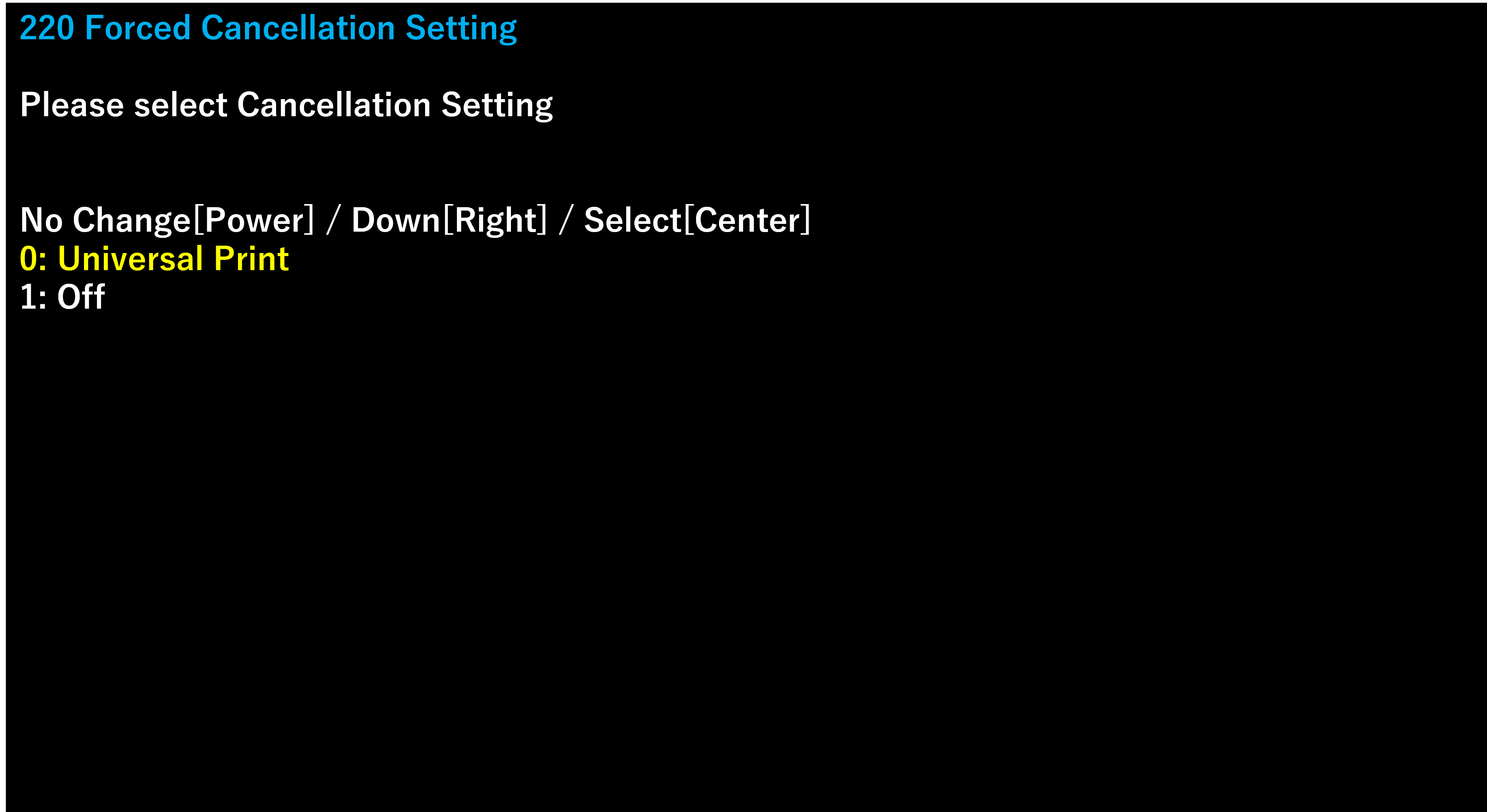 - 选择[220 Forced Cancellation Setting](220强制取消设置)并选择[RUN](运行)。