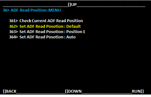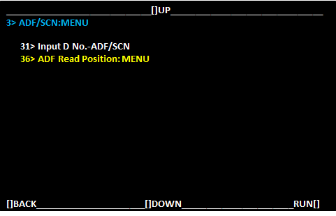 选择[36> ADF Read Position:MENU ](100安装模式:菜单)并选择[RUN](运行)。