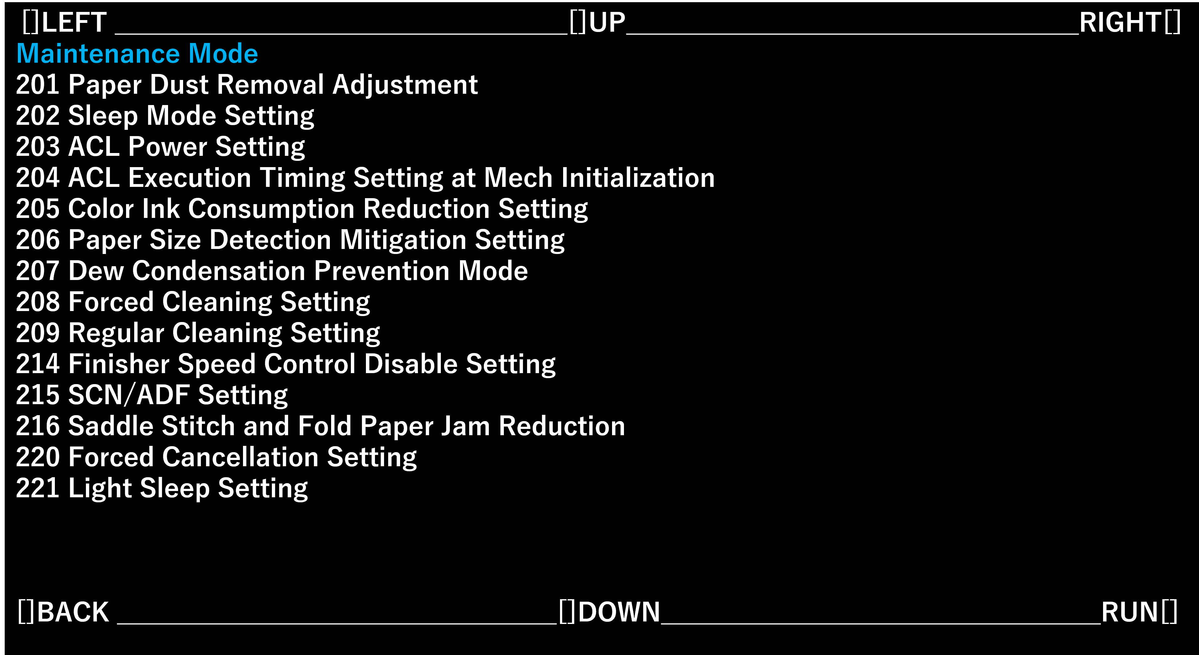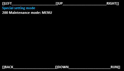 选择[200 Maintenance Mode:MENU ](100安装模式:菜单)并选择[RUN](运行)。