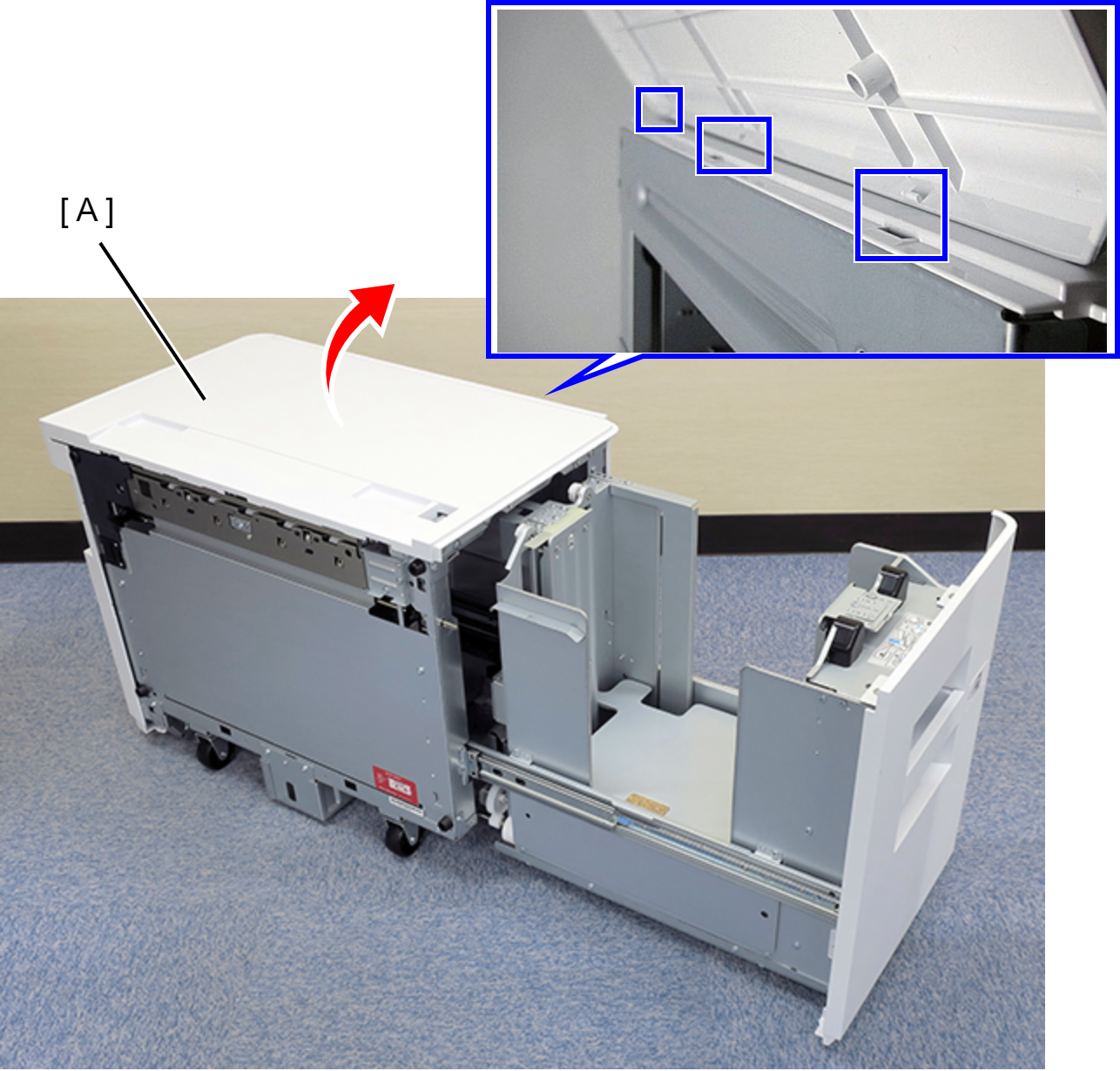 将右侧盖 (A) 向后滑动以释放 6 个挂钩并将其取下。