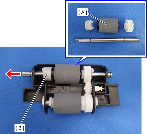 Assemble / 組み立て- 从扭矩限制器(B)一侧插入分离辊轴。