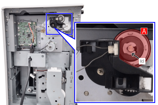 - 拆下 E 形环 [c],然后拆下 PF 进纸离合器 [A]。
